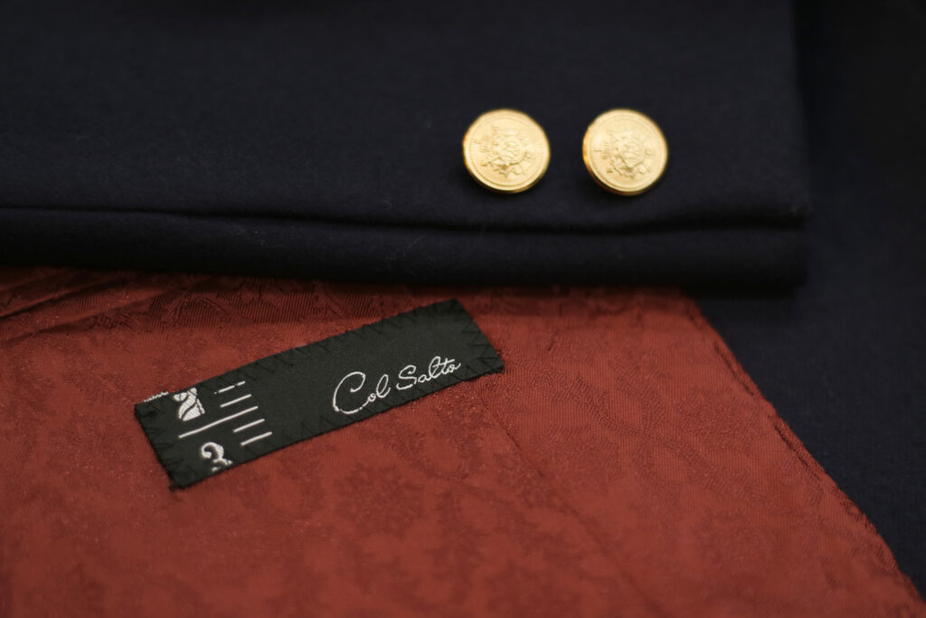 また、ゴールドのメタル釦(ボタン)は