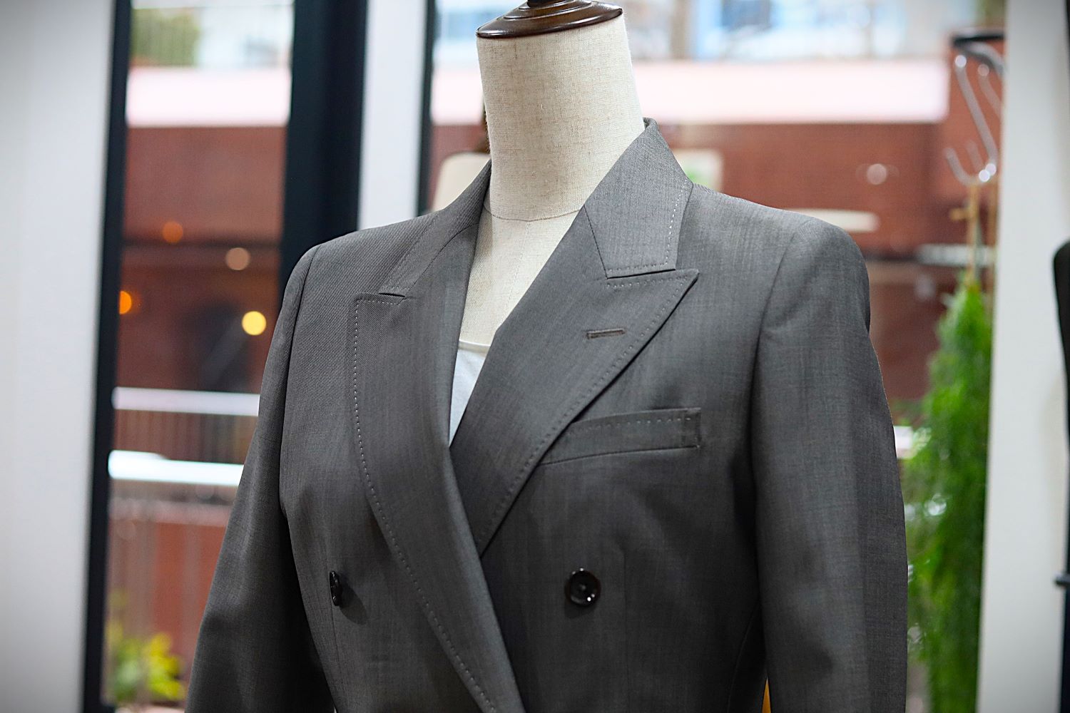 グレーのダブルスーツは、どうしても硬い印象になりがち。