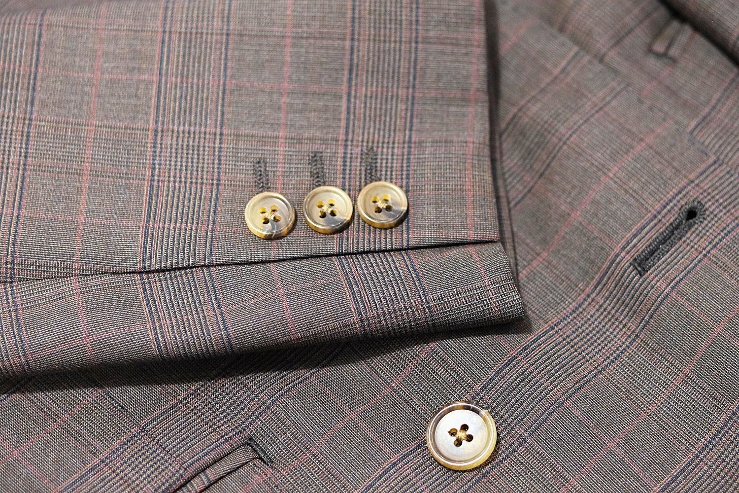 「4つボタン1つ掛け」のダブルジャケット。