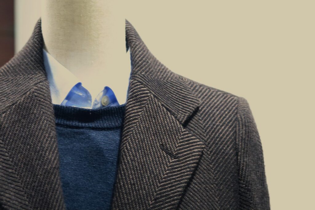 大柄のヘリンボンのチェスターコートです。