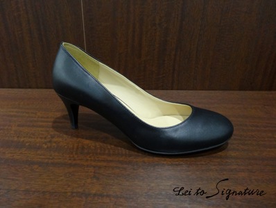 ヒール6㎝、黒のラウンドタイプのシューズです。